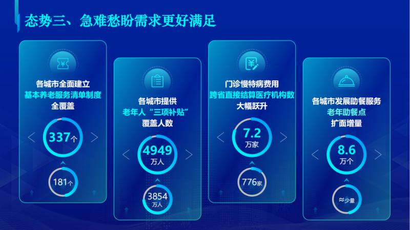 报告指出,城市能力指数呈现出东部引领、中部领先,西部、东北地区持续提升的区域格局。老年人急难愁盼需求更好满足,跨省直接结算医疗机构数快速铺开,老年助餐点几乎从无到有。服务体系质量明显提升,养老机构护理型床位占比达到65.7%、超额完成“十四五”规划目标任务,养老服务相关专业招生规模持续增加。银发经济发展全面发力,养老机构等传统业态加快优化提升,智慧健康养老、居家适老化改造等新兴业态不断培育壮大,抗衰老、脑机接口、人形机器人等未来业态加快应用示范。