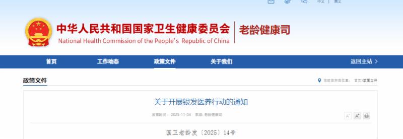 近日,国家卫生健康委、民政部、人力资源社会保障部、国家中医药局、国家疾控局印发《关于开展银发医养行动的通知》(以下简称《通知》)。现解读如下: